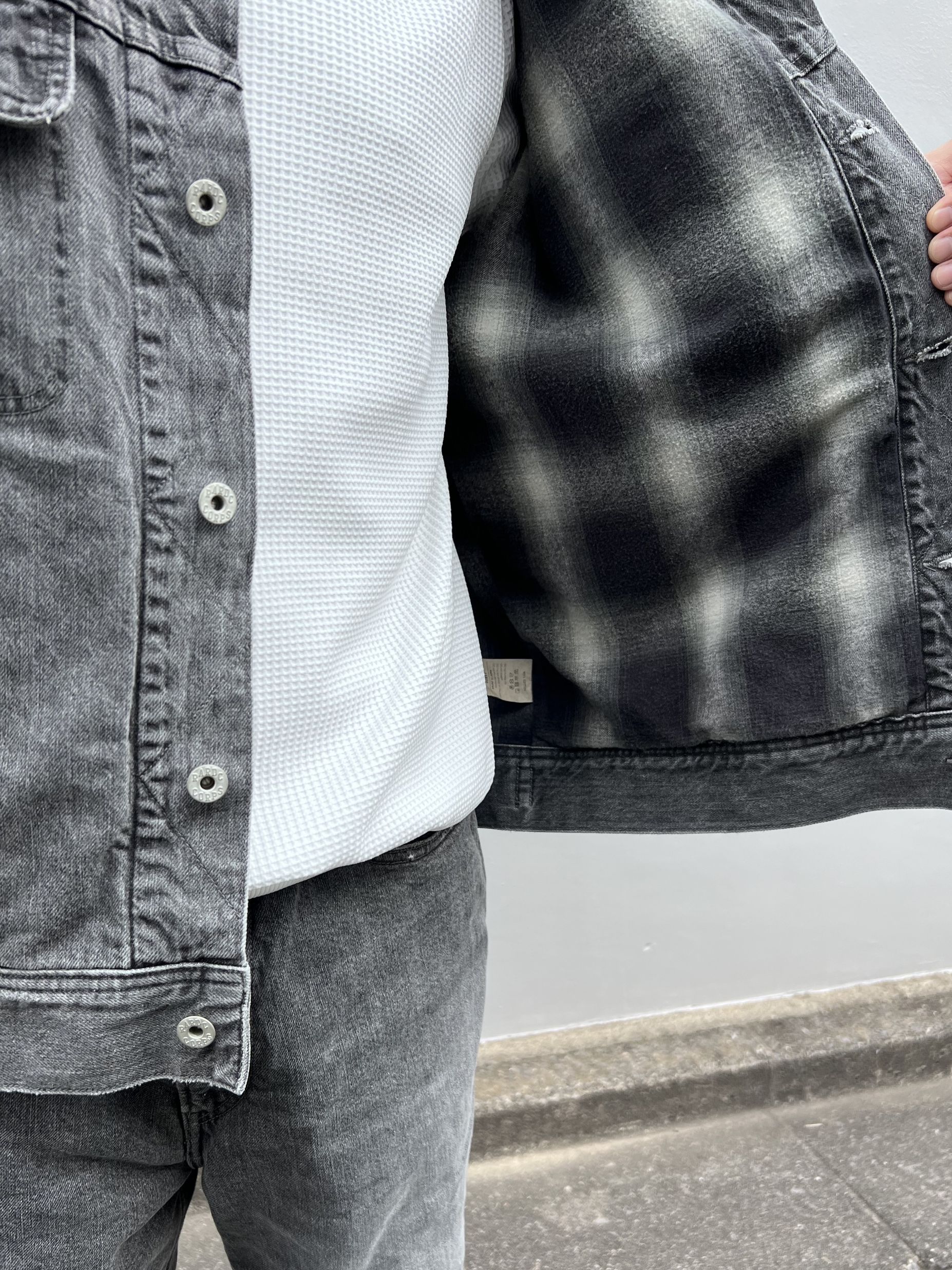 ジャケットはワークウェア由来のディテールを踏襲しつつ、現代的なシルエットで都会的な印象に。