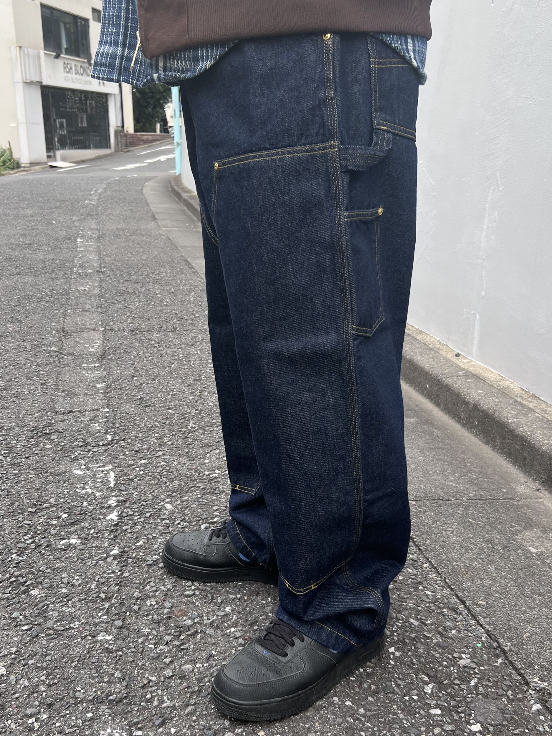 ルーズフィットのシルエットに、ダブルニー、トリプルステッチ、ツールポケット、ハンマーループといったワークディテールを搭載。