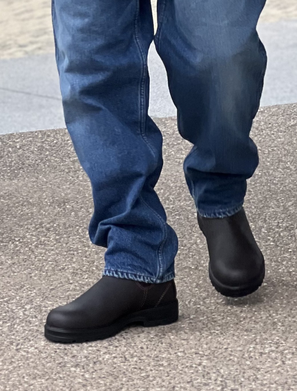 足元には Blundstone のサイドゴアブーツ を合わせることで、セットアップのタフさを損なわず、締まりのある印象に。