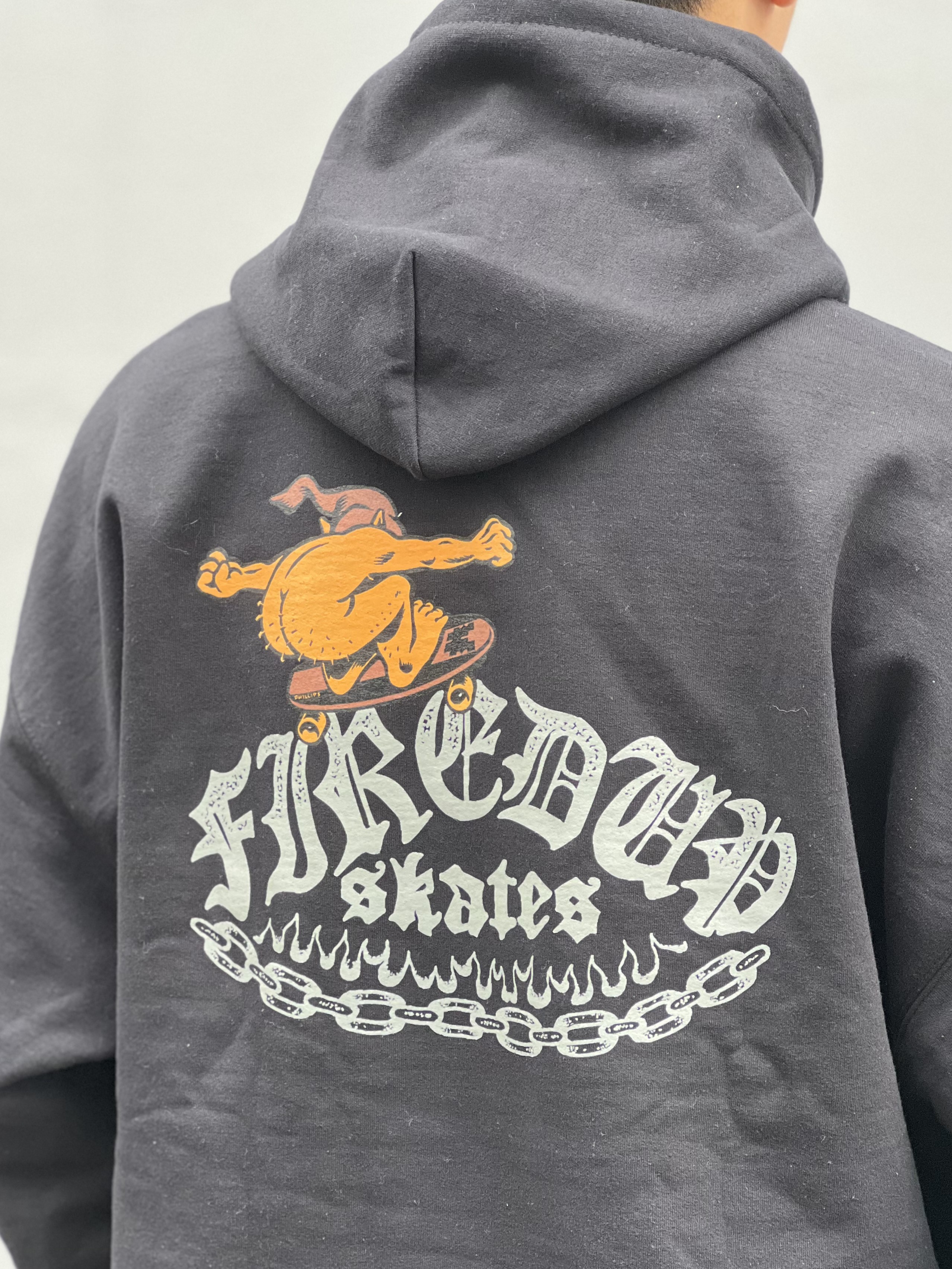 FIRED UP SKATESHOP のロゴと組み合わせた特別仕様で、コラボならではの象徴的なデザインに仕上げています。
