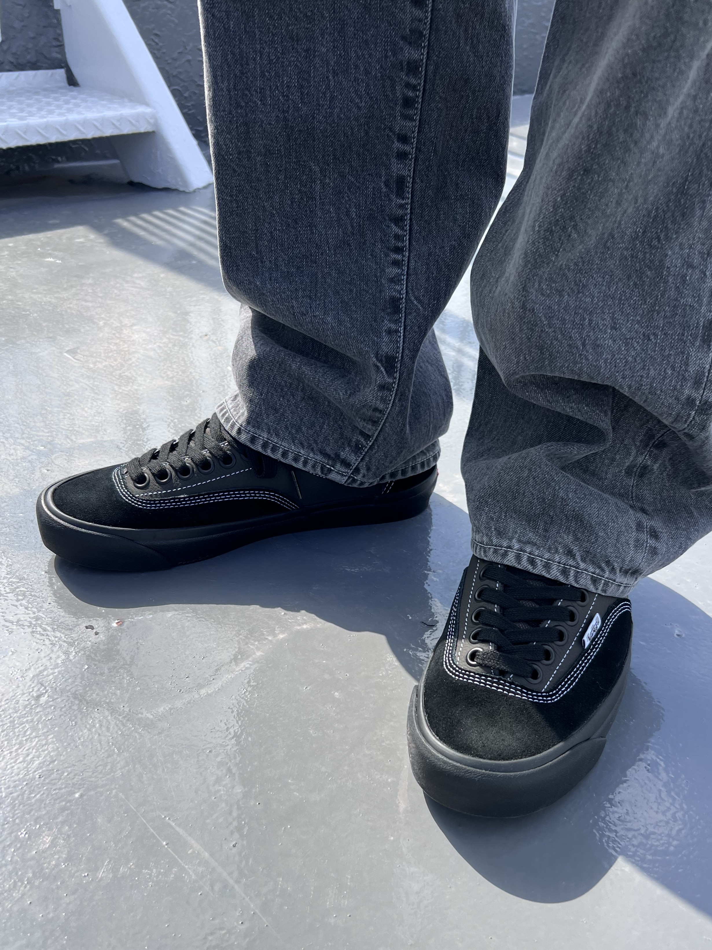 そして足元には機能性を高めた VANS Skate Era Stubのオールブラックを合わせることで、落ち着きのある上品なモノトーンスタイルに仕上がります。