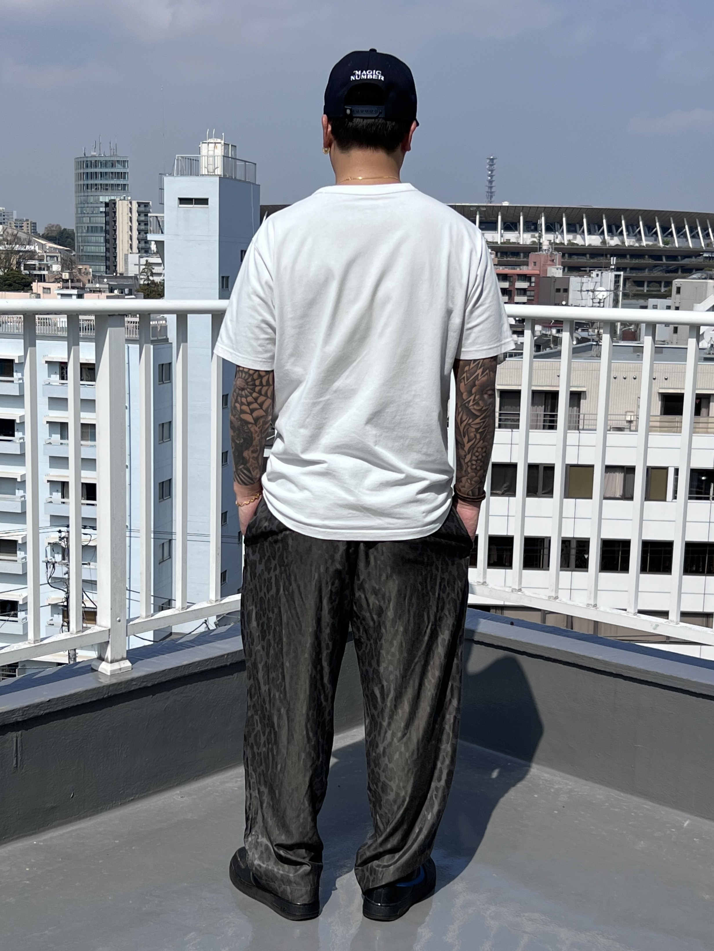 そこに合わせるのは、レオパード柄の RAYON TWILL LEOPARD BEACH PANTS。