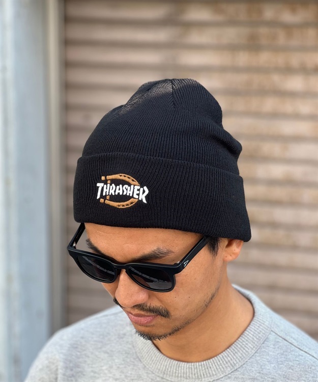 コラボ刺繍を施したアクリル素材のビーニー。