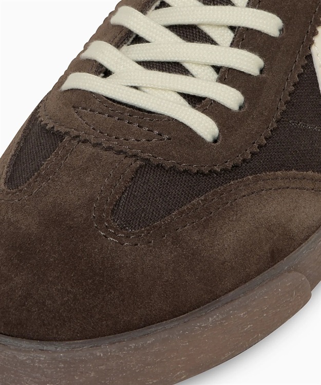 キャンバス素材のアッパーに、トウと踵にスエードを採用することで耐久性を向上。 ハトメ飾りの特徴的なギザギザのカッティングやトウのパターンなど、オリジナルのイメージを残しつつ、バルカナイズド製法でアレンジしたクラシックかつモダンな雰囲気の一足。