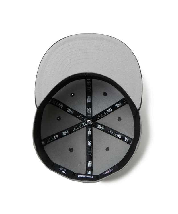 シルエットはフロントパネル内側の芯を取り除いたソフトバックラム仕様の59FIFTY。サイズ調整のない仕様で、約1cm刻みのサイズ展開。頭の小さい方から大きな方まで、ジャストサイズで被ることができます。また、アジャスターがないので、リアのシルエットが美しく、頭の形が綺麗に見えます。