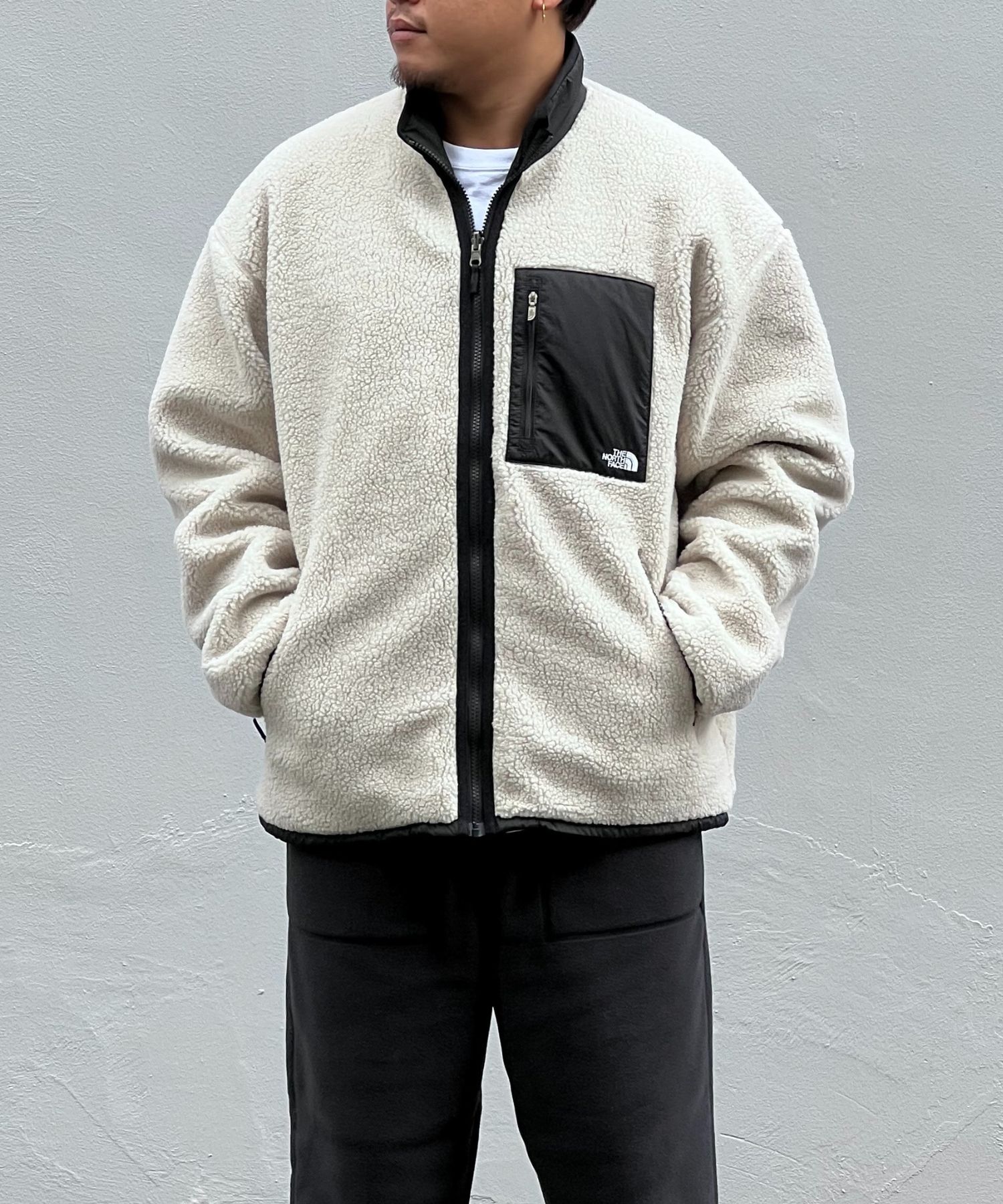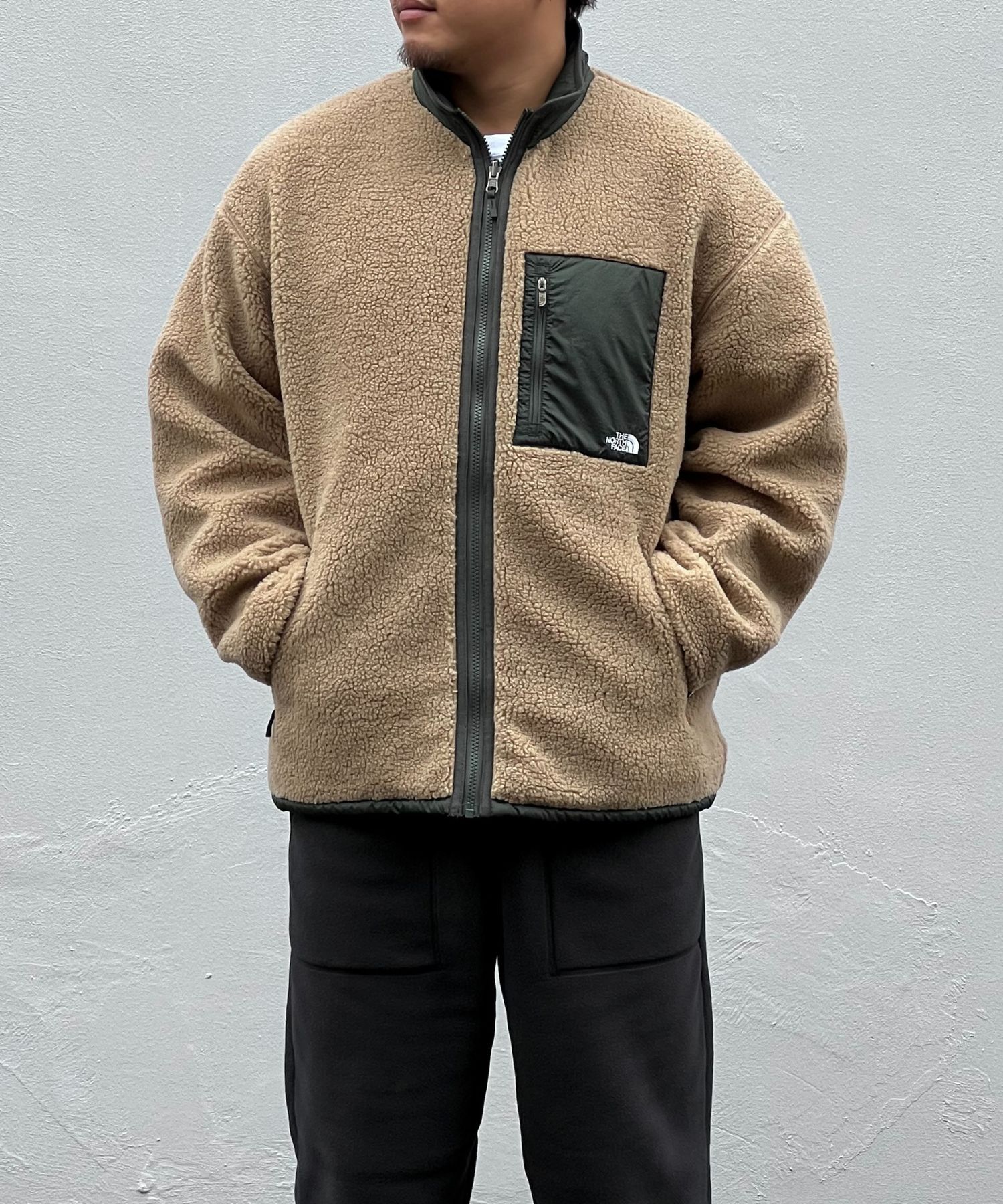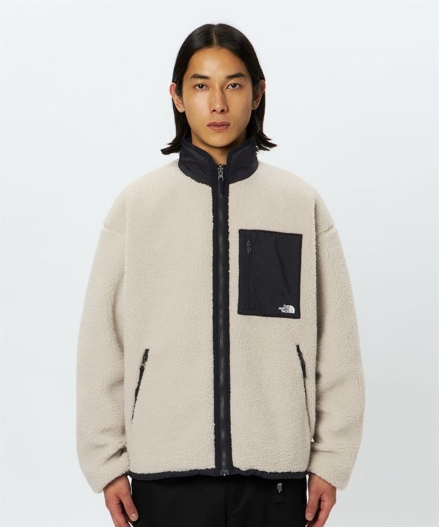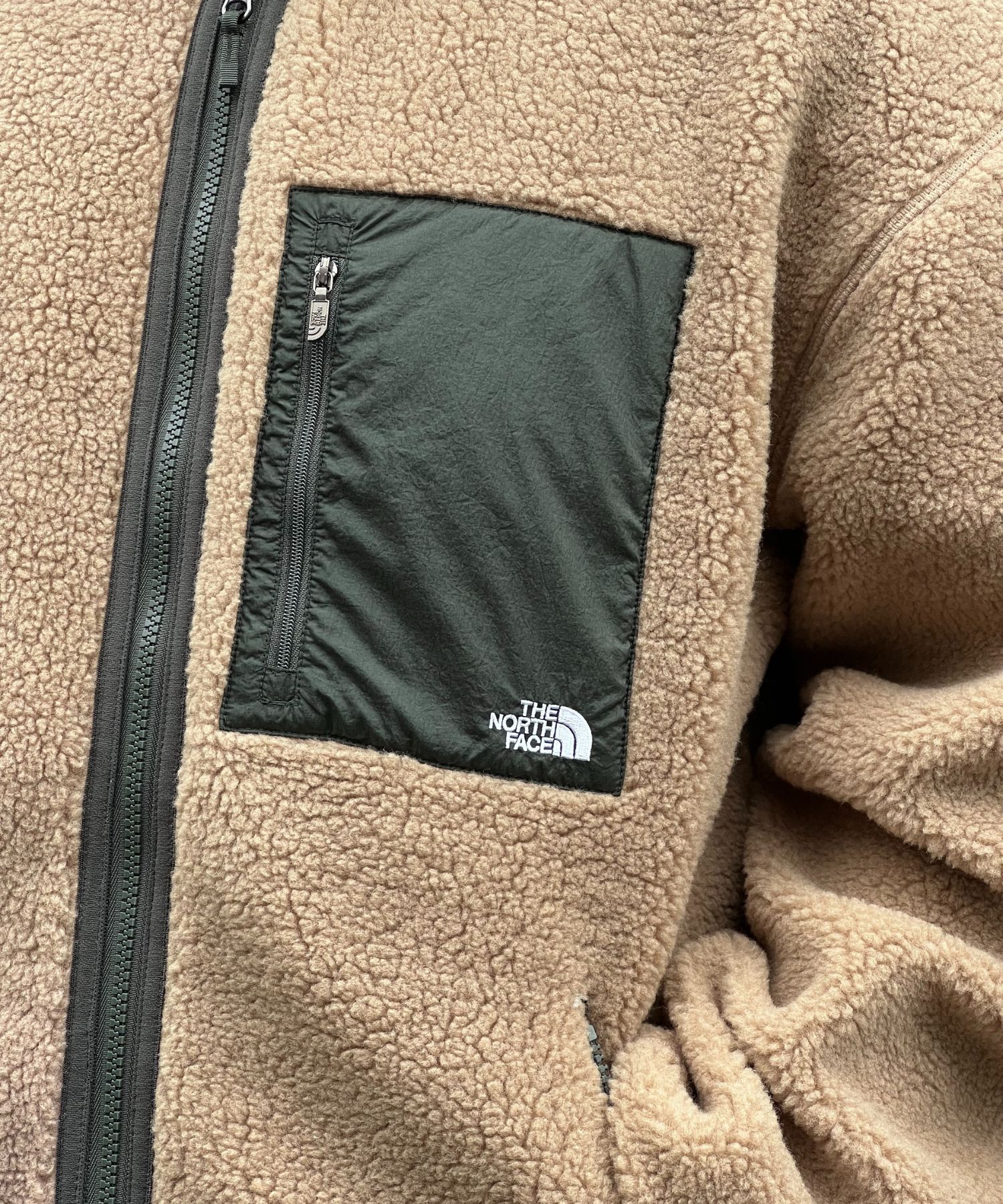 フリース側はポリエステルのボアフリースで保温性を考慮。ボリュームを抑えめにし、インナーとしても使いやすい仕様です。左胸に配置した布帛のファスナーポケットは、デザインのアクセントにもなっています。