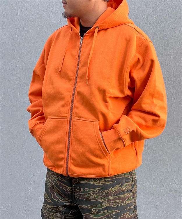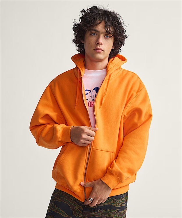 カスタム ソーラー オレンジ カラーのこの超リラックスしたジップ パーカーは、控えめでありながら際立っています。適応性を高める双方向ジッパー、滑らかな外側と柔らかな内側を実現する起毛フレンチテリー、5 チェッカーボード刺繍がプレミアムなディテールを追加します。
