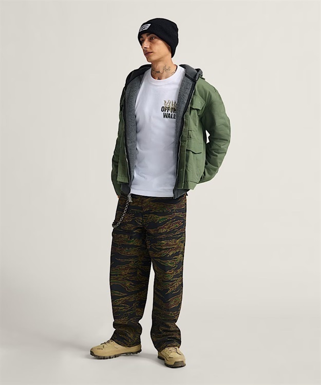 ・伝説のグラフィティアーティスト、エリック・ヘイズによる織りカスタムVansロゴを胸ポケットに