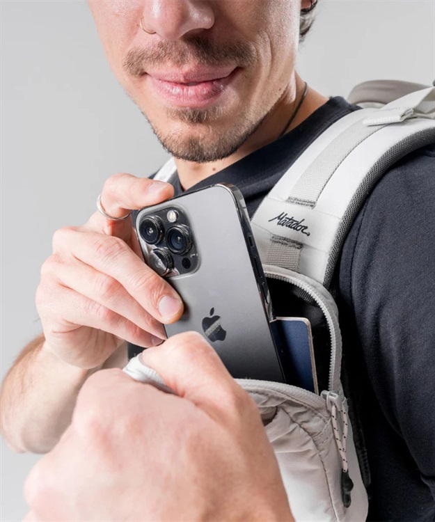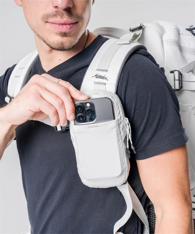 マタドール スピードスタッシュは、バックパックのショルダーハーネス等に取り付けて携帯電話やカード、財布などの小物を管理することができるアクセサリーです。