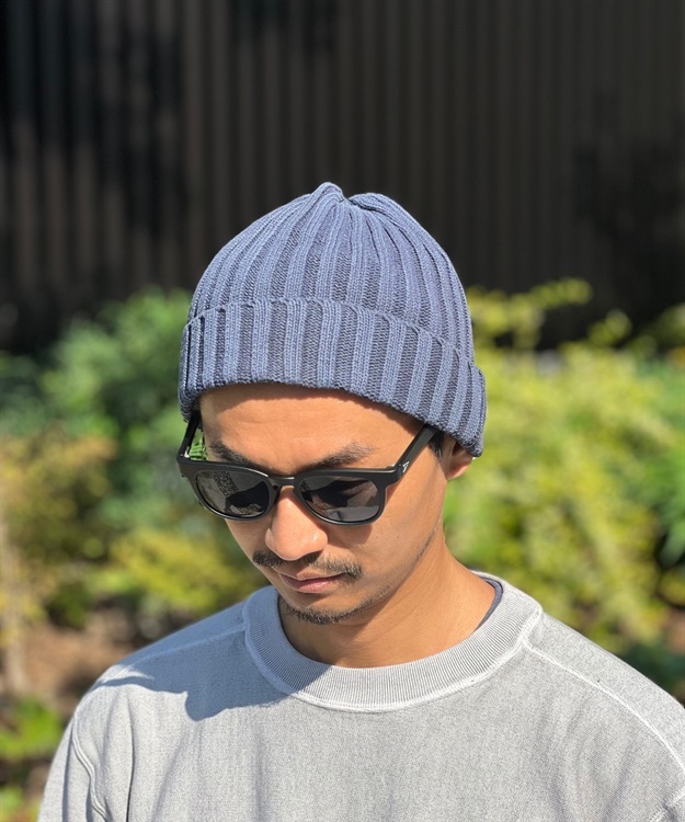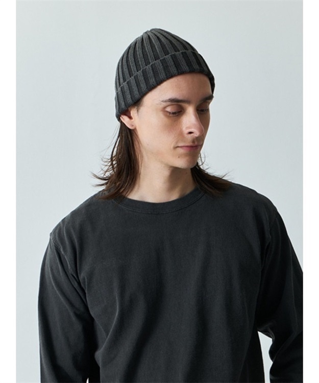 ※コットンニットの製品につきましては素材の特性上、製品染め、洗い・乾燥加工による縮率に個体差が生じて参りますため、新品の状態では形や大きさが個別に異なりますが、元はすべて同じものを染色しておりますので、製品を揉み解して生地を馴染ませたり何度かご着用をいただくうちに、徐々に同等の寸法へと戻っていきます。