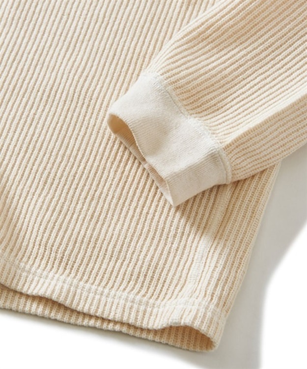一般的な薄手のコットンニットに比べ丈夫で風を通しにくく、生地の間に適度に空気がこもるため、保温性にも優れています。