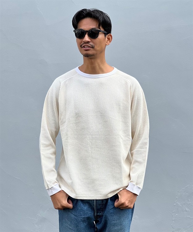 シルエットやデザインは極めてシンプルで、ベーシックなTシャツの代わりにコーディネートに取り入れやすく、袖付けは落ち着いた雰囲気かつ機動性の高いラウンドラグランスリーブを採用しています。