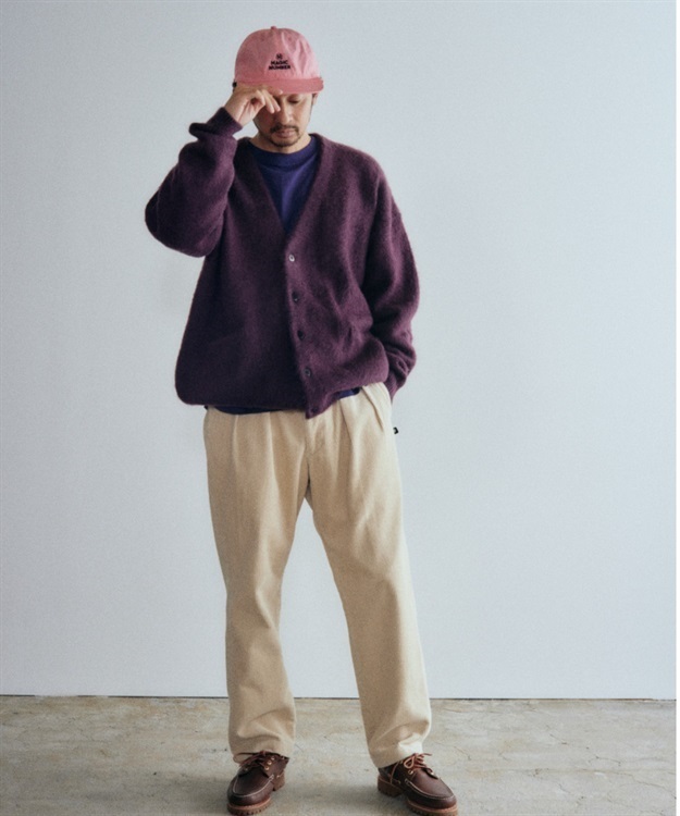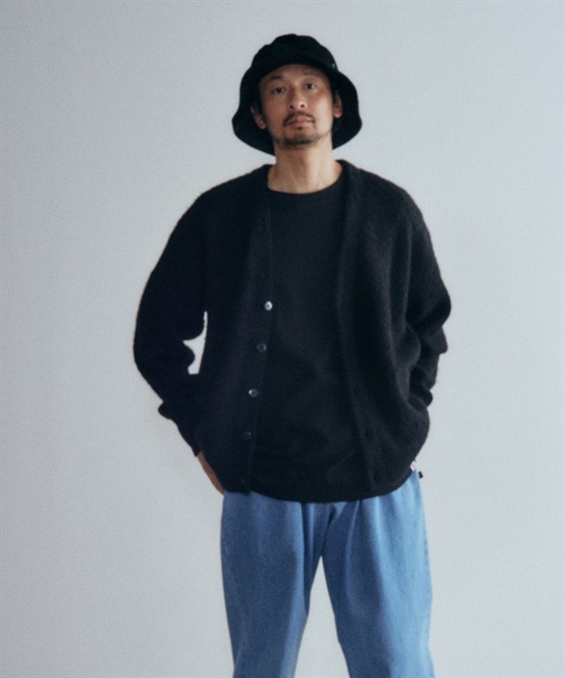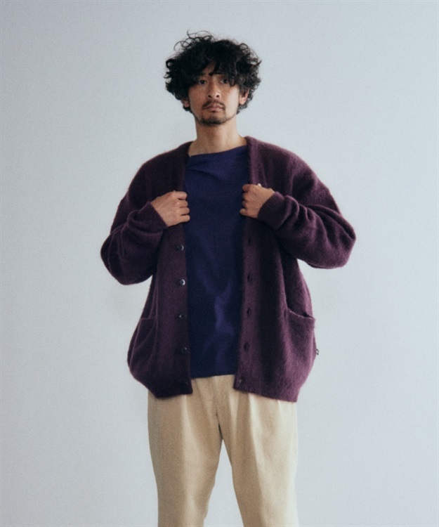 程よい厚みの7GWジャガード仕様のモヘアカーディガン。