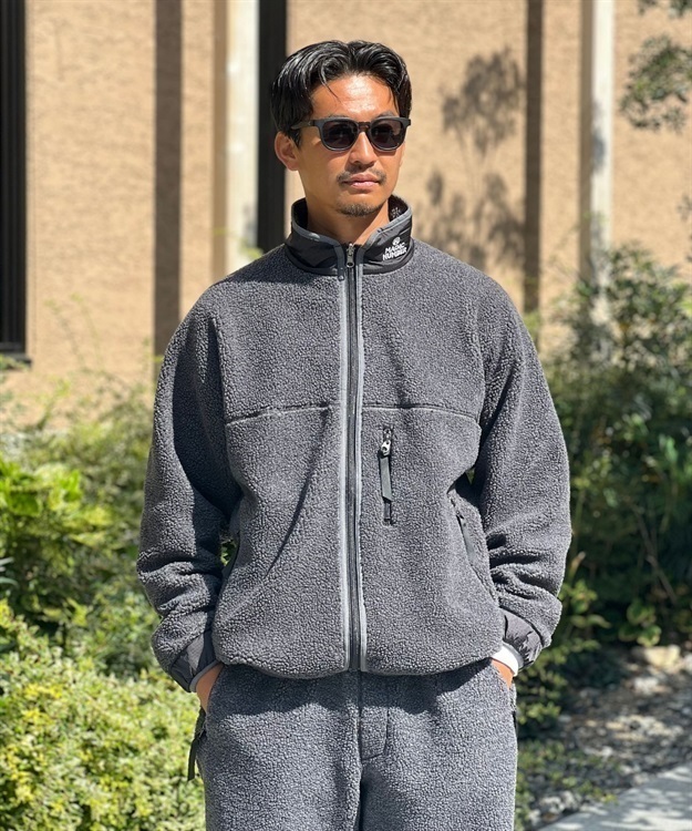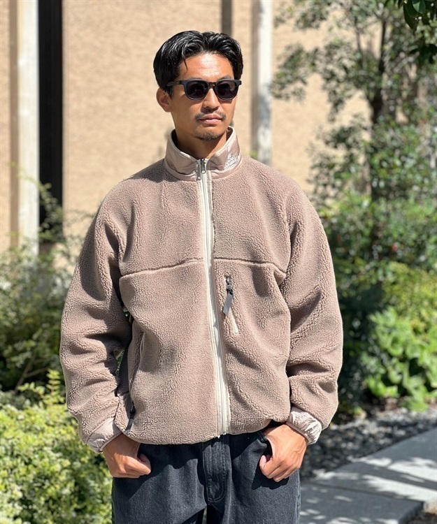 ・首周リの保温を考慮し、内側にボア、外側にナイロンを配置したスタンドカラー