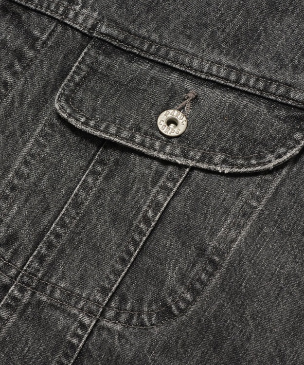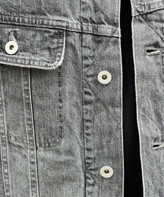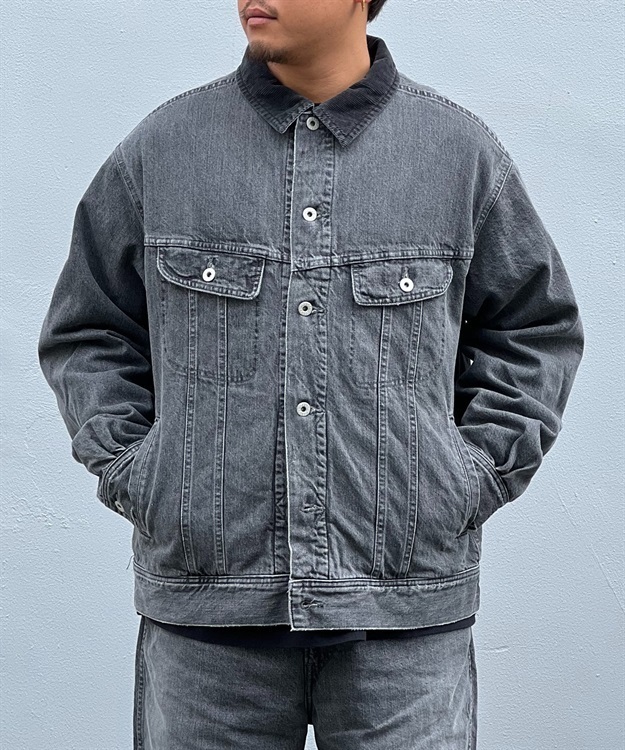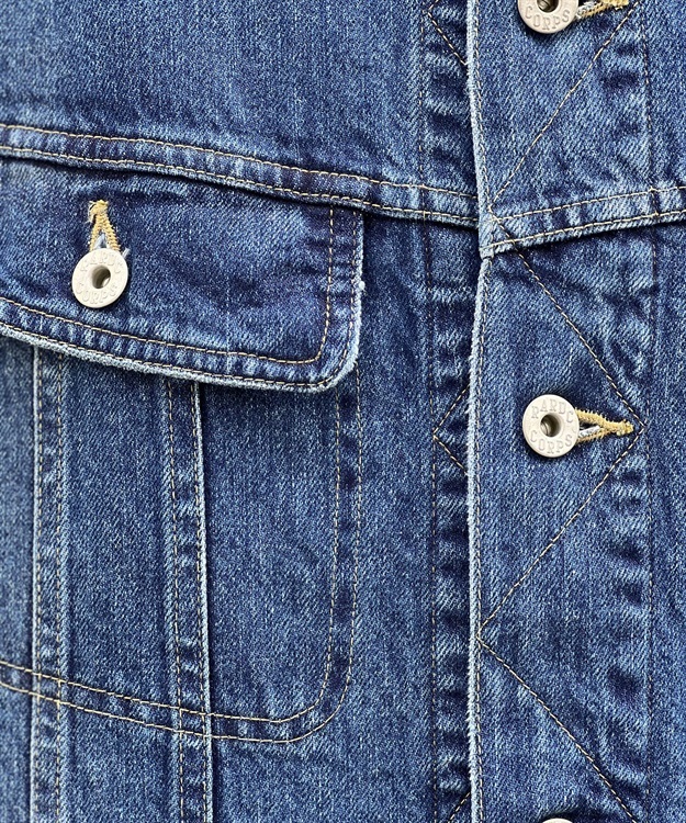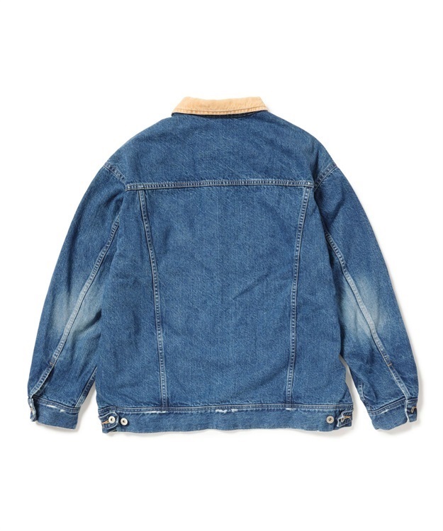 襟部分のコーデュロイやフロントポケットはウェスターナーからインスパイアされており、デザイナー自身が長年着込んだジャケットを元に再現されたデニムジャケットで、加工によりあくまでも自然な風合いの色落ちを再現。