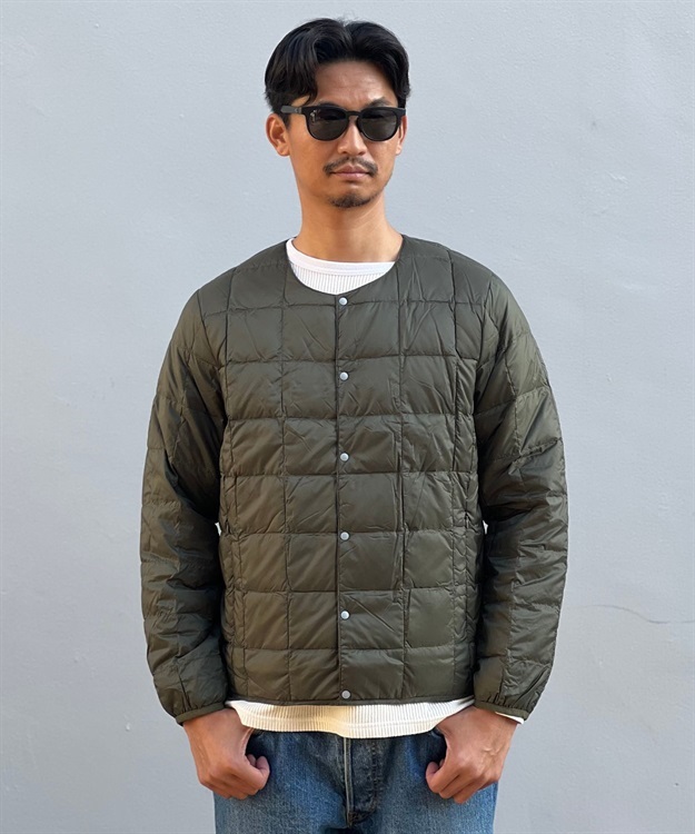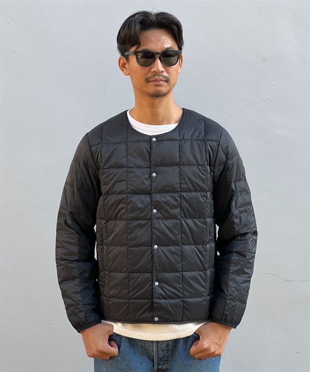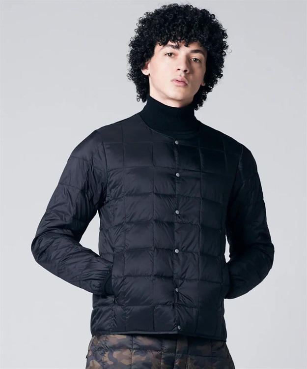 TAIONの定番、ベーシックインナーダウンは、ジャケットやコートの下に着るのはもちろん、Tシャツ・シャツ・パーカーなどの上にも気軽に羽織れる、軽くて暖かく着回しやすいシンプルなデザインが特徴です。