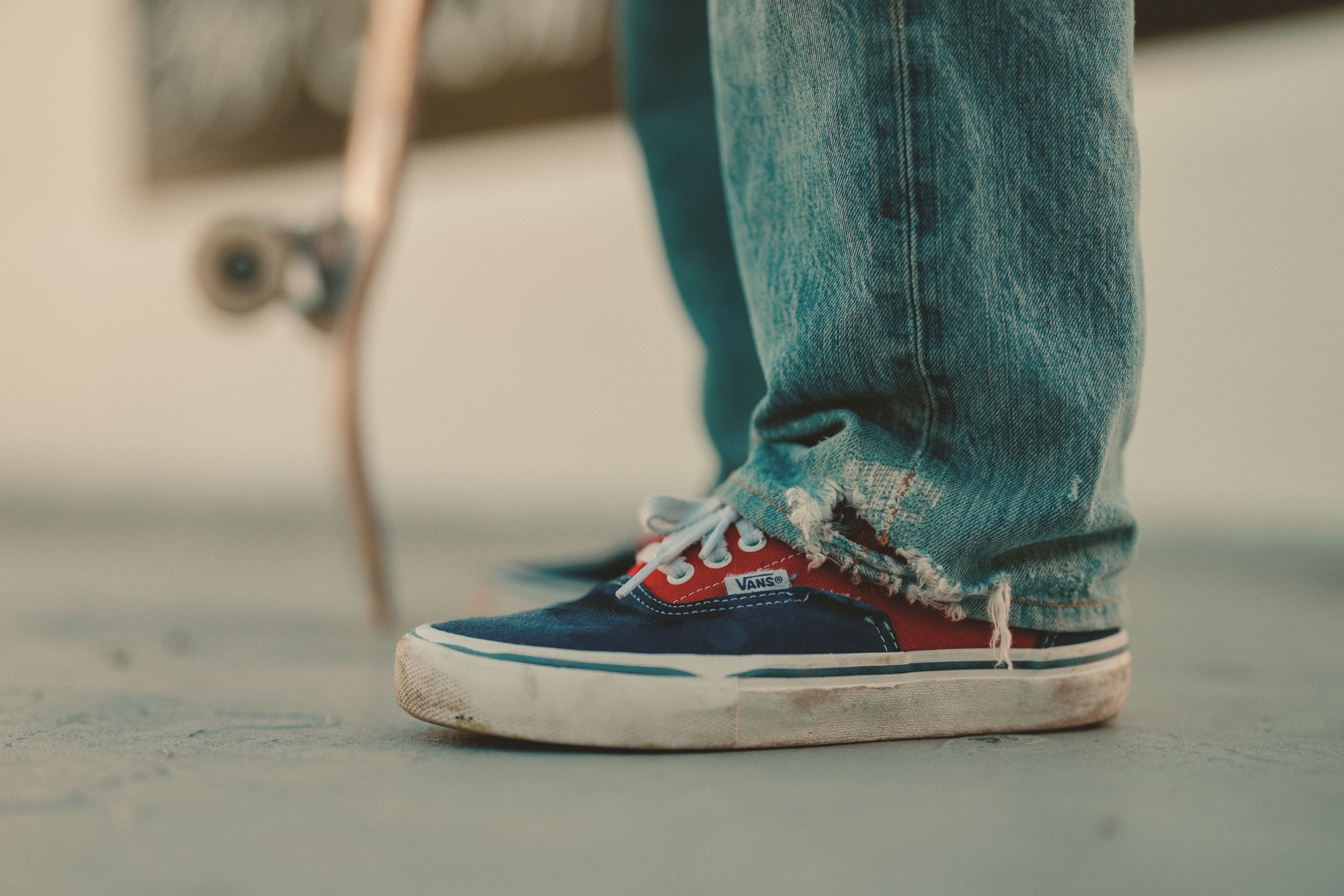 ブルーとレッドの配色は当時のスケートカルチャ ーを象徴する最もクラシックなカラーリング。