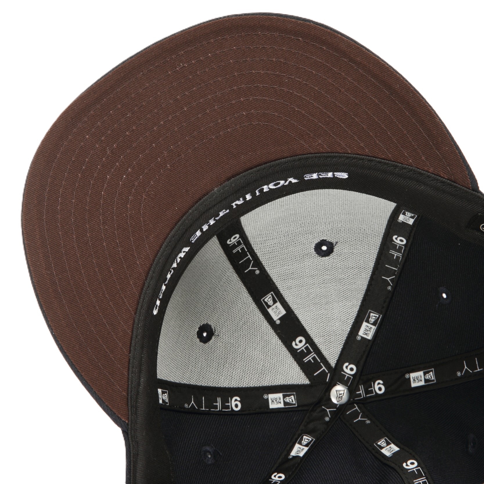 ツバ裏にはブラウンを採用し、ネイビーとのコントラストが上品さを演出します。