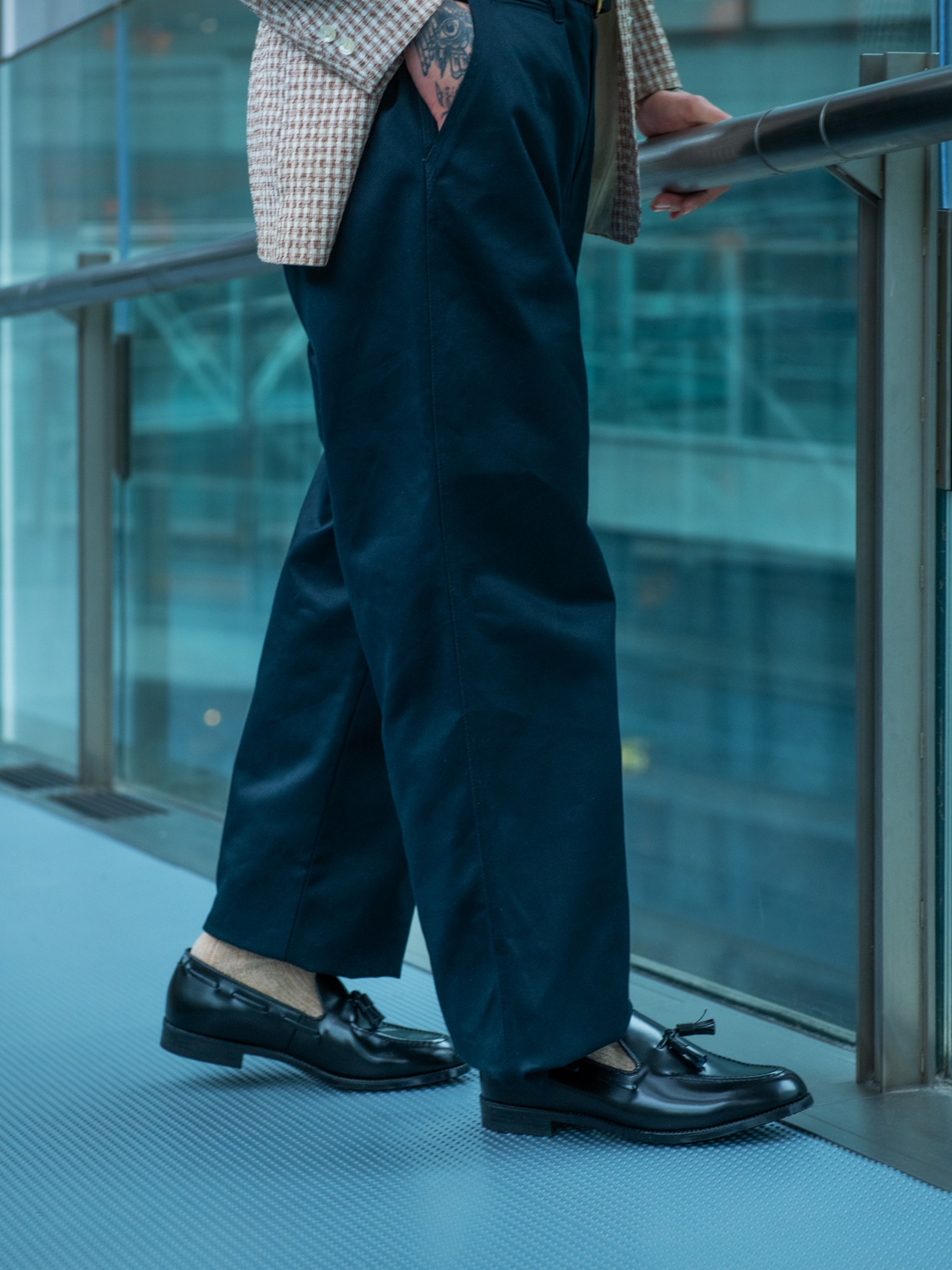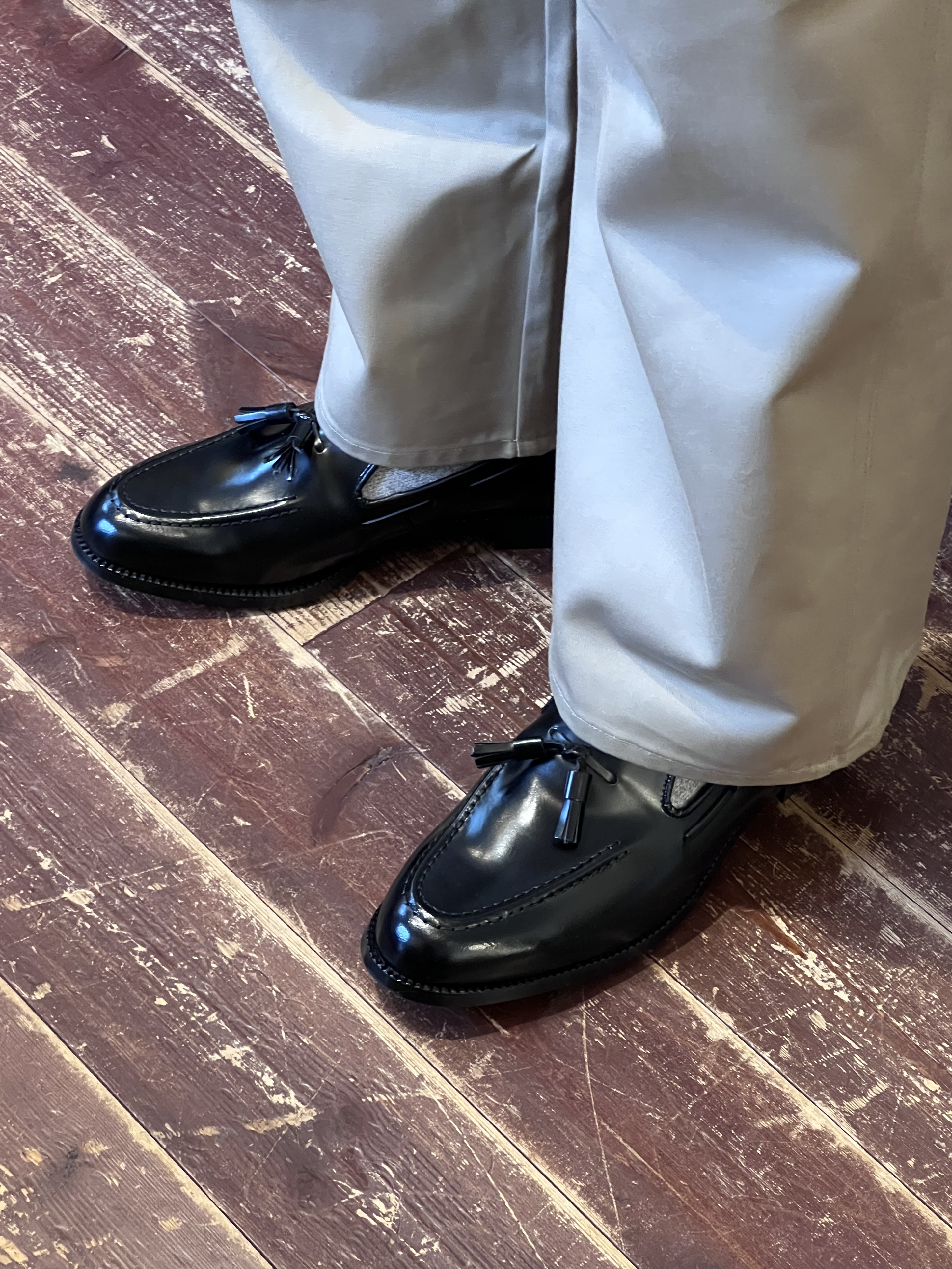 軽快なデニムはもちろん、ワイドシルエットのスラックスにも好相性なシティスタイルを彩る一足。